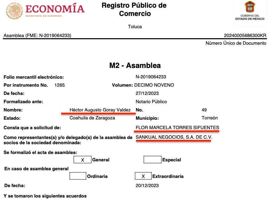 Lo curiosos es que las 16 razones sociales tienen a representantes o apoderados legales en común, todas consignadas ante la fe del Notario Público No. 49, Héctor Augusto Goray Valdés, de Torreón, Coahuila, e igualmente todas a solicitud de Flor Marcela Torres Sifuentes, según consta en los registros públicos de comercio de las citadas empresas, que se ubican en diversas partes del país como Torreón, Coahuila, Durango, Estado de México y Jalisco.