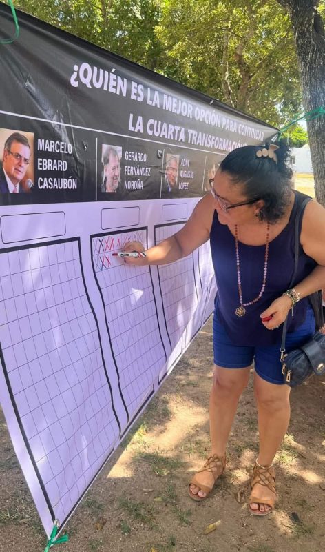 En una lona con los rostros de los seis aspirantes presidenciales, los ciudadanos interesados podían marcar al personaje que consideran la mejor opción para competir en las próximas elecciones.